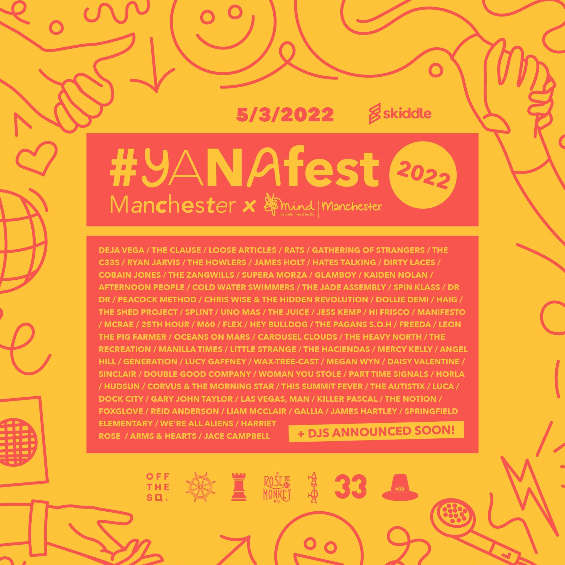 Sat 4th March – back to Leon’s words at YANA festival.. you are not alone has a crackin line up and is for Manchester Mind.