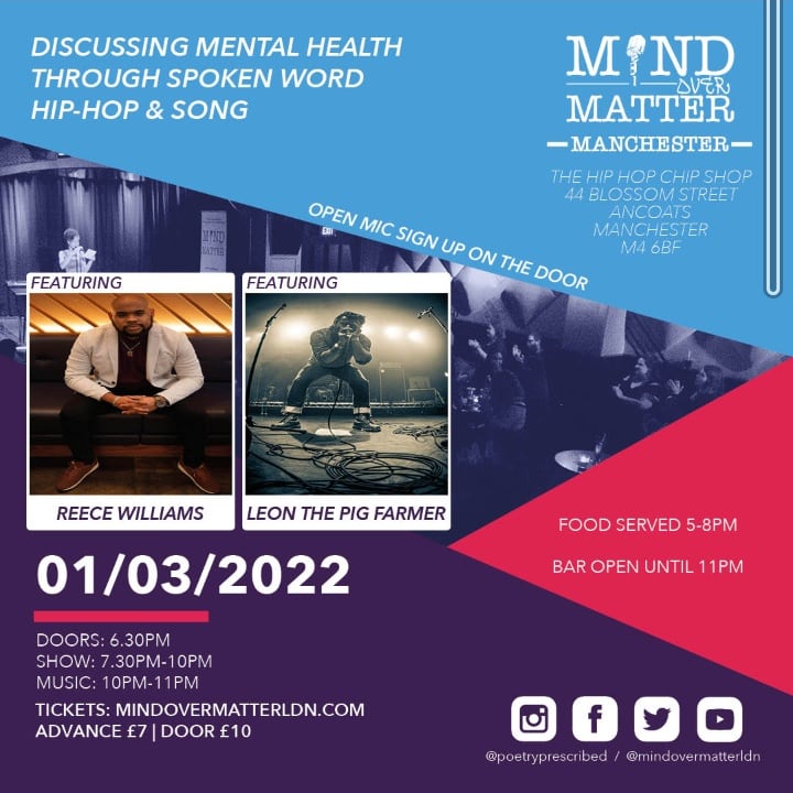 Tue 1st march – I’m at hip hop chip shop, ancoats for mind over matter spoken word night.